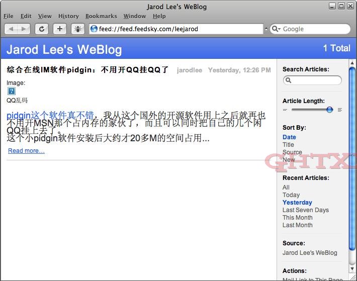 更重要的是,rss终于可以搜索了!记得以前月光博客也问过哪一家会第一个真正的在RSS阅读中提供搜索功能,现在看来,还是Apple,这家以创新闻名于世的公司第一个实现了在RSS阅读器中的搜索功能!